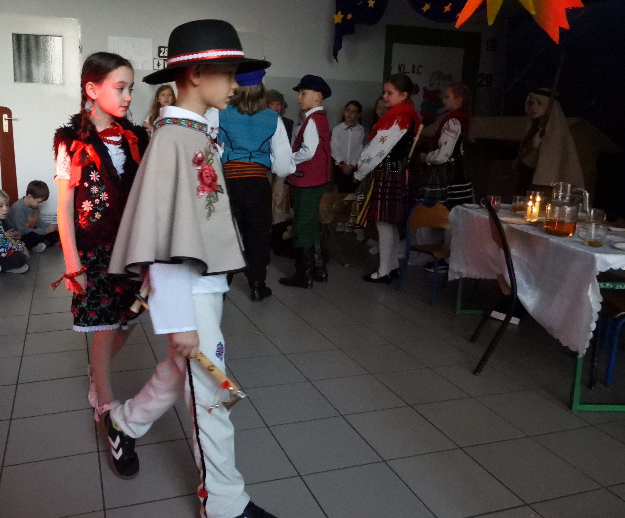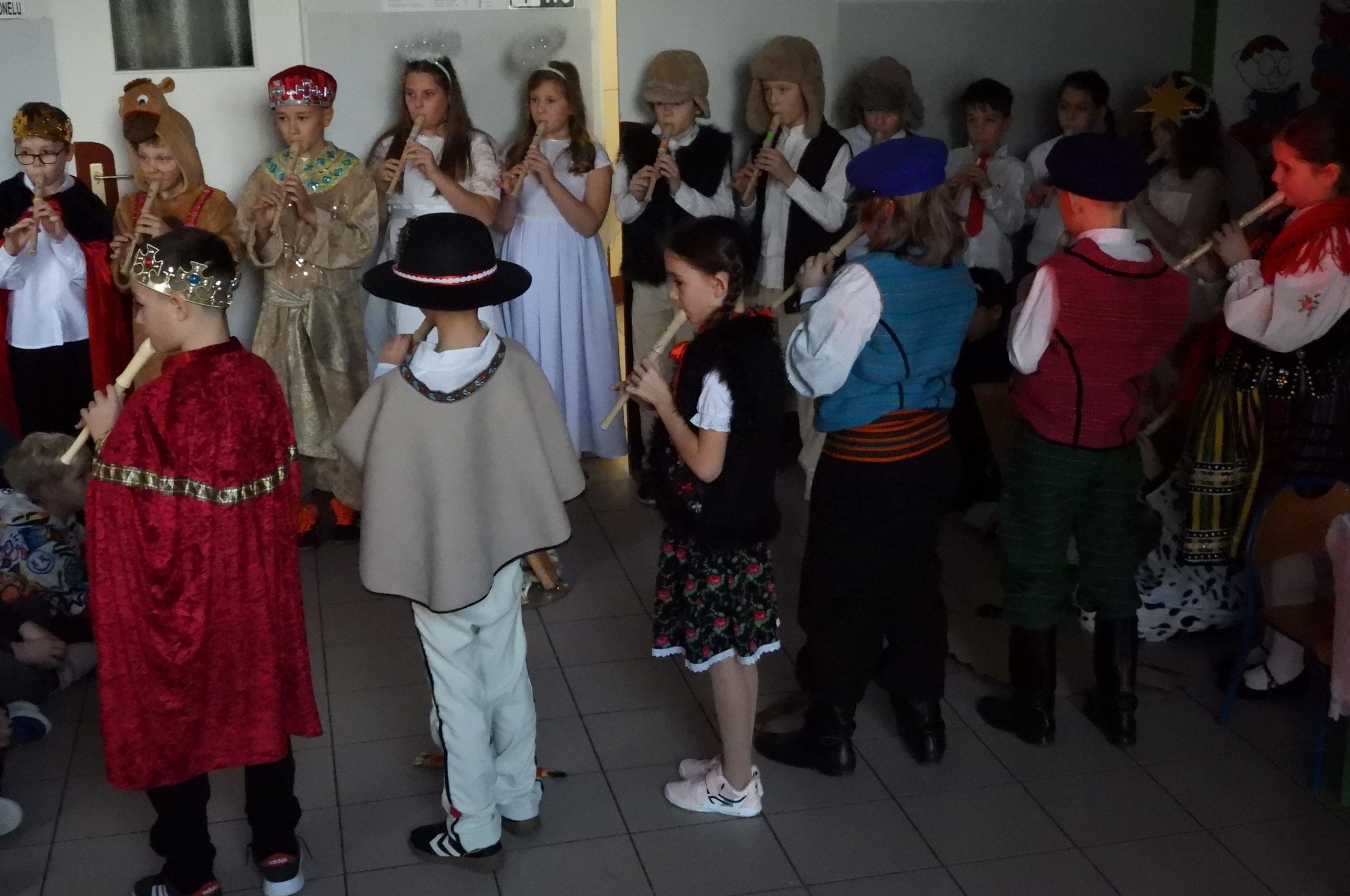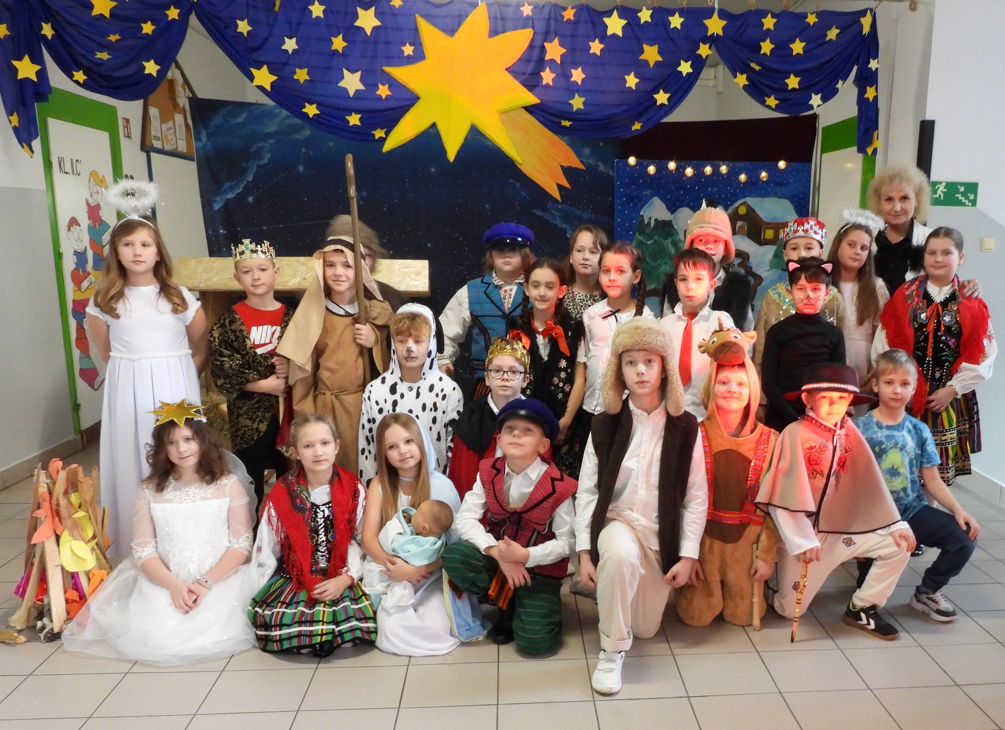 W dniu 17 grudnia, klasa III b pod kierunkiem Ewy Goliat, zaprezentowała dla klas młodszych bożonarodzeniowe przedstawienie zatytułowane "Dzieciąteczko Maleńkie". Dzieci pokazały przygotowania do wigilii, rodzinną wigilię wraz domowymi zwierzętami oraz odwiedziny Świętej Rodziny w stajence. Pokazały też, że mimo dodatkowego nakrycia zabrakło miejsca dla przypadkowych wędrowców, którymi okazali się Maryja z Dzieciątkiem, Jezus i Anioł. Gra małych aktorów, ciekawe stroje, bogata oprawa muzyczna i gra na fletach zostały wysoko nagrodzone gromkimi brawami. Na koniec przedstawienia głos zabrała Pani Dyrektor Agnieszka Bernaciak, która złożyła wszystkim życzenia świąteczne.