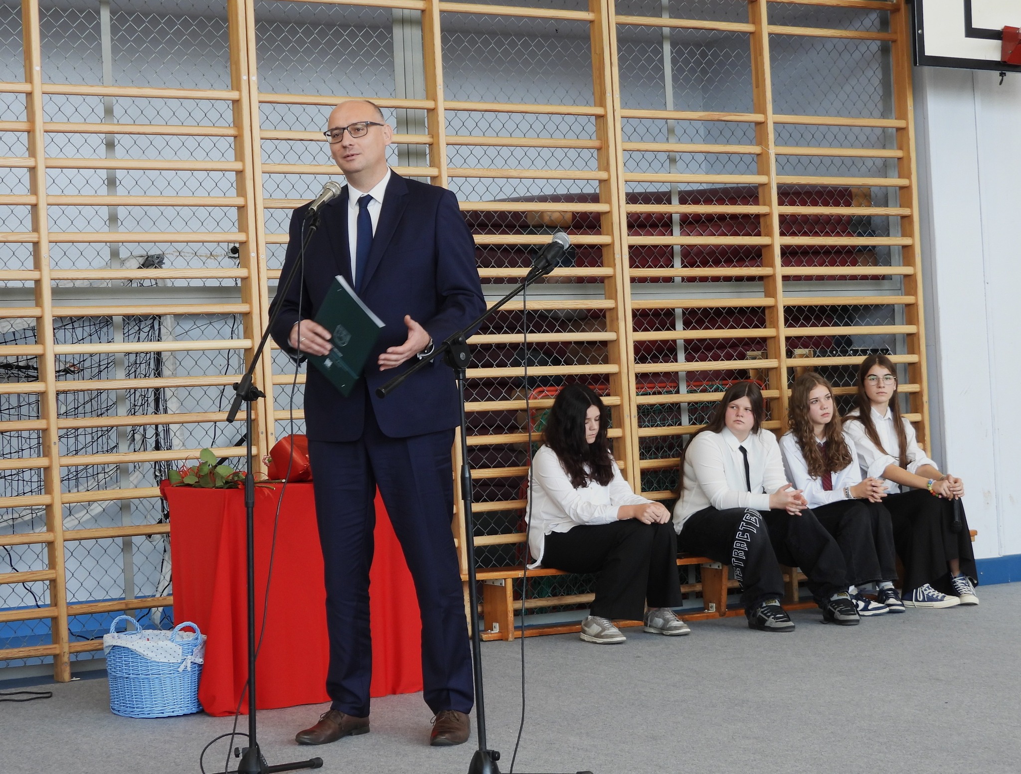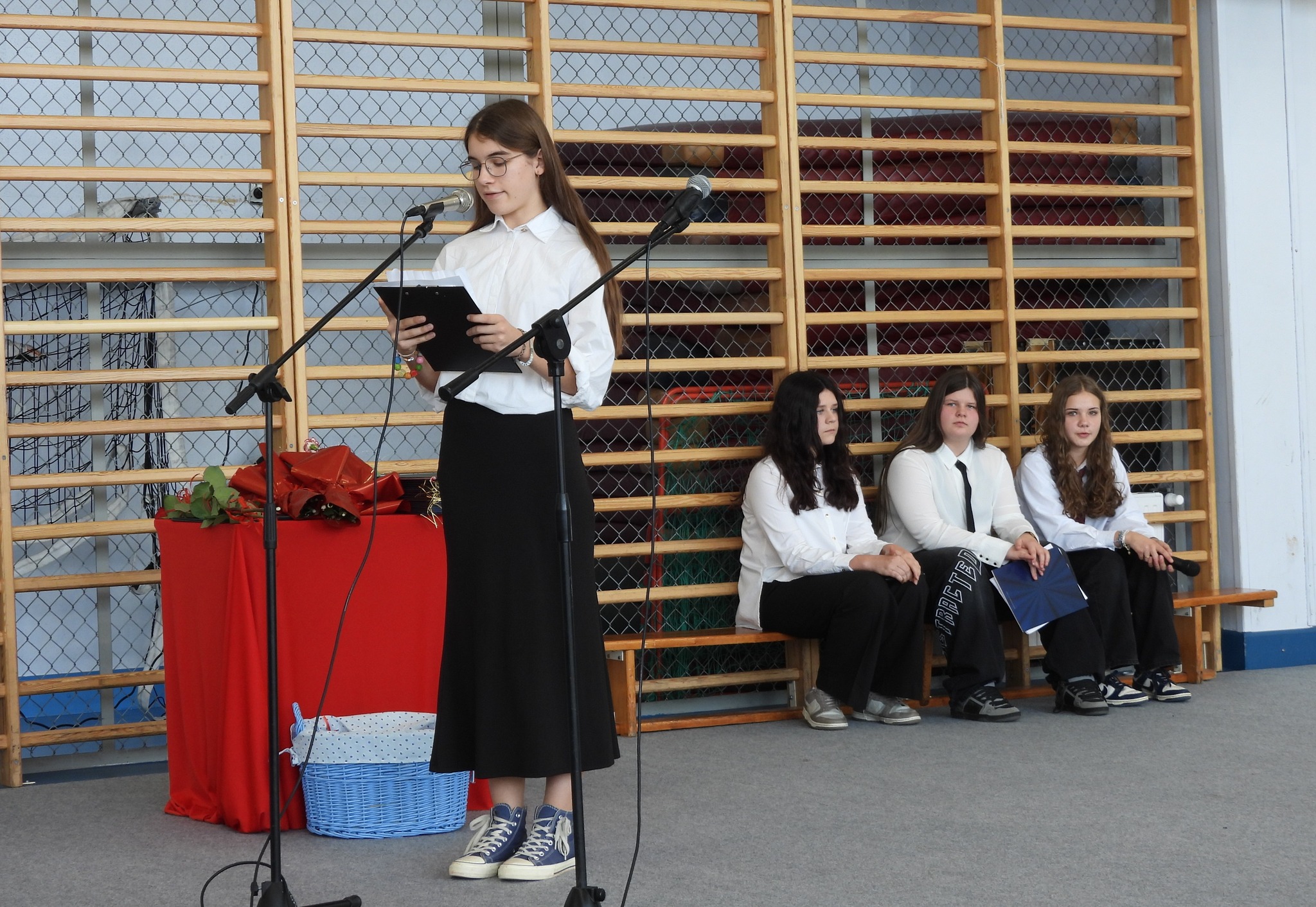 Głos zabrała również pani dyrektor, która podziękowała wszystkim pracownikom administracji i obsługi, organowi prowadzącemu, przyjaciołom szkoły oraz całemu gronu pedagogicznemu za zaangażowanie i pasję w pracy z młodymi ludźmi. Słowa uznania skierował także pan wójt, podkreślając rolę szkoły w życiu lokalnej społeczności. Nie zabrakło słów wdzięczności i życzeń od Rady Rodziców.