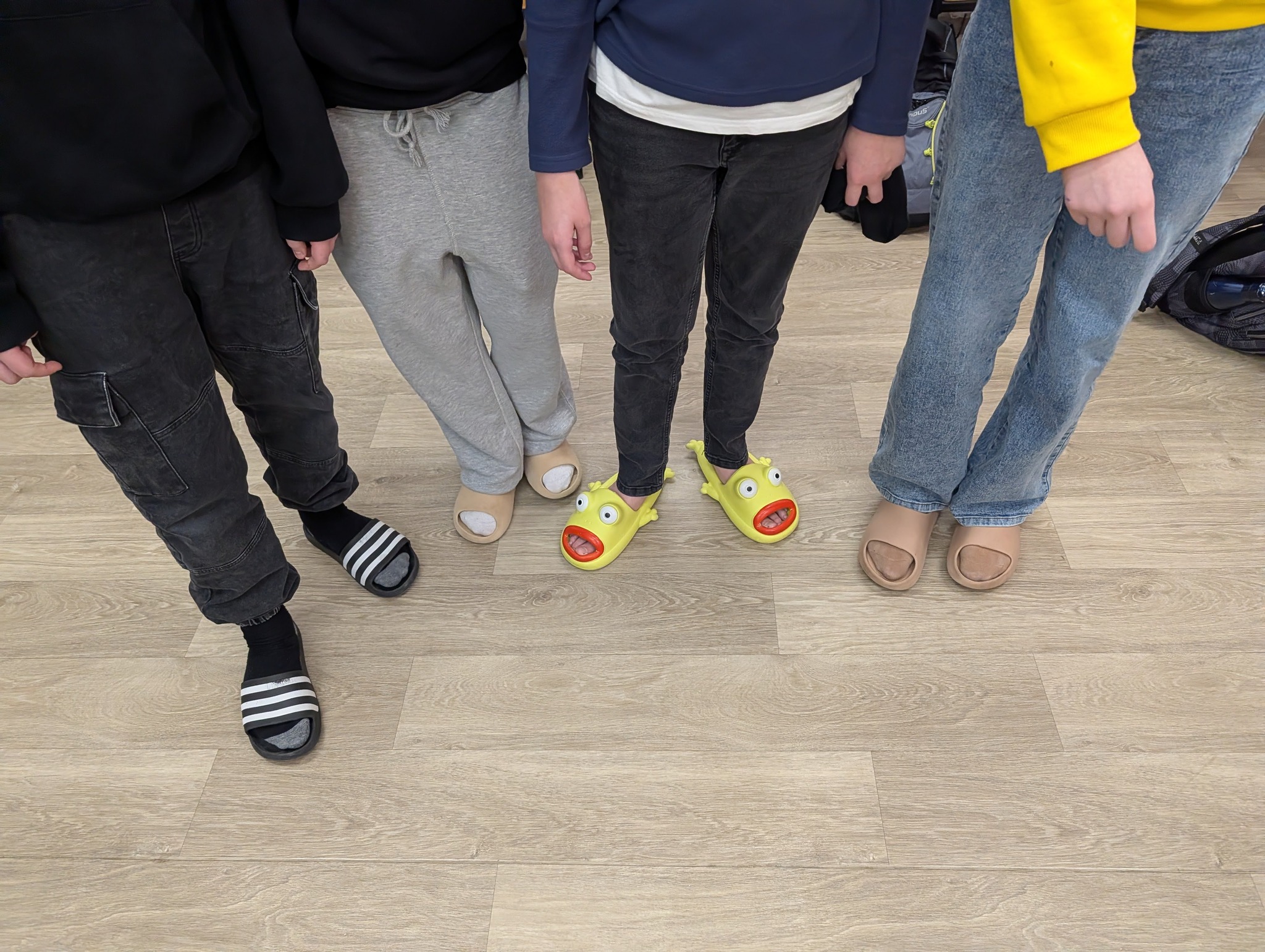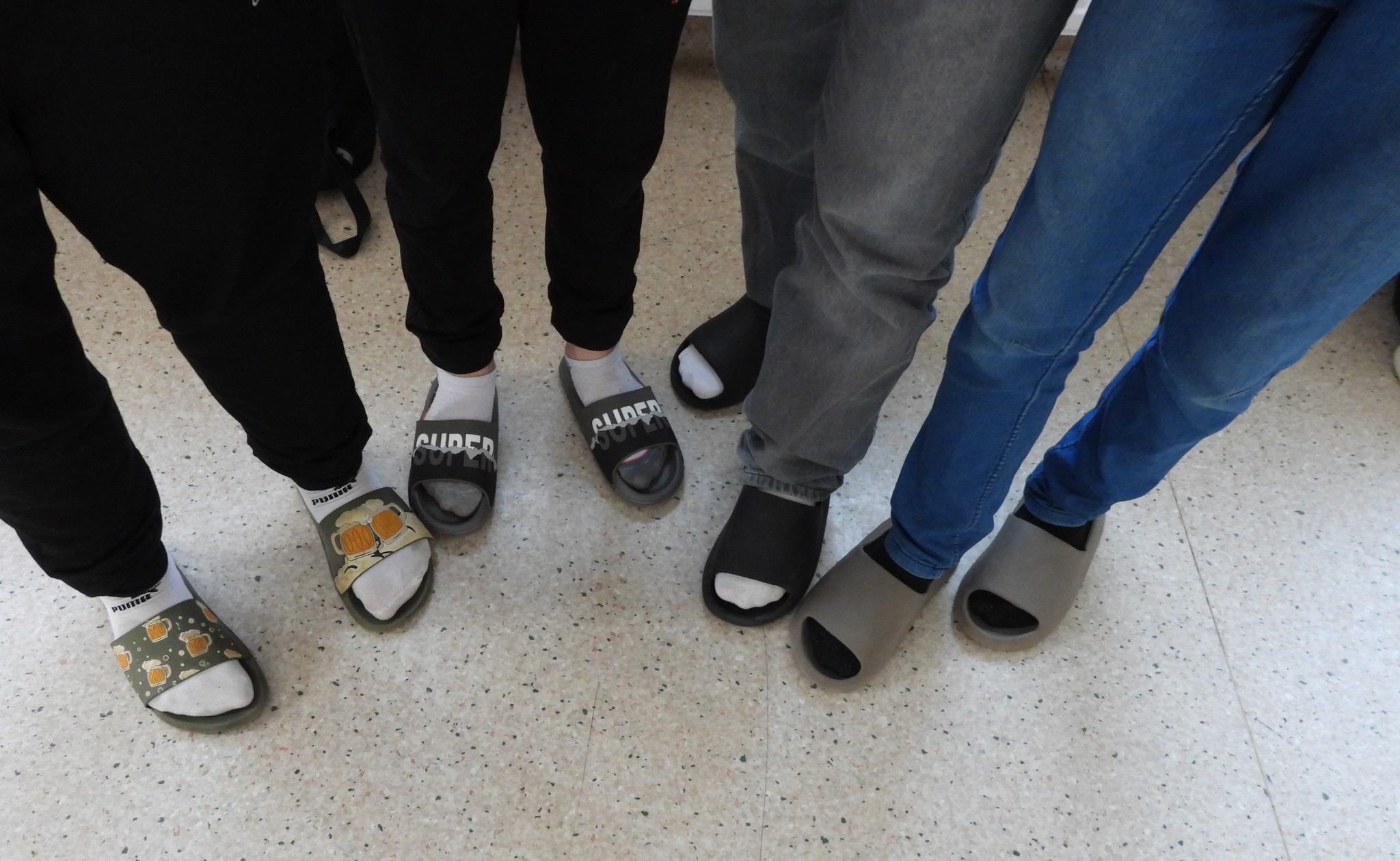 Następnego dnia w naszej szkole odbył się wielki test gotowości na wiosnę! Zamiast ciężkich butów, na korytarzach pojawiły się klapki. Oczywiście w wersji „na bogato”, czyli w żelaznym zestawie ze skarpetkami (bo jednak rano jeszcze trochę mrozi)!
