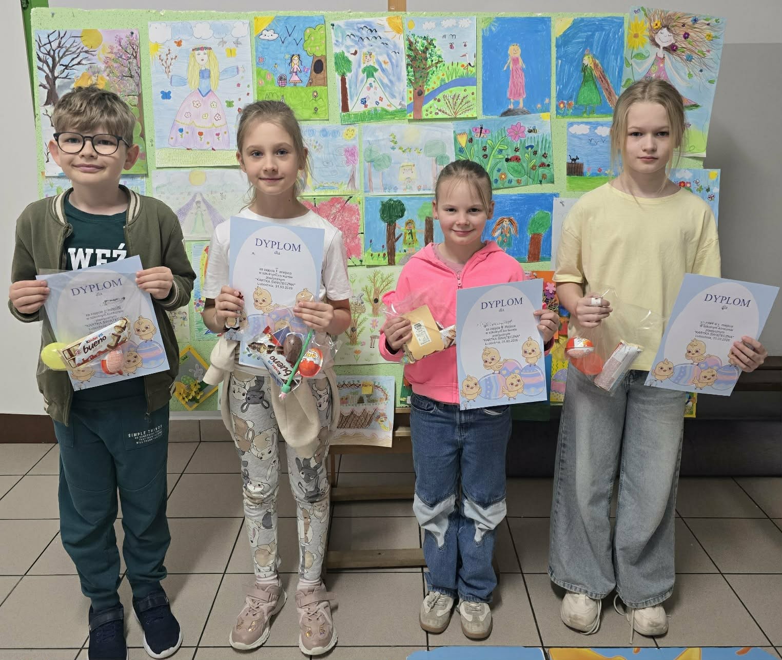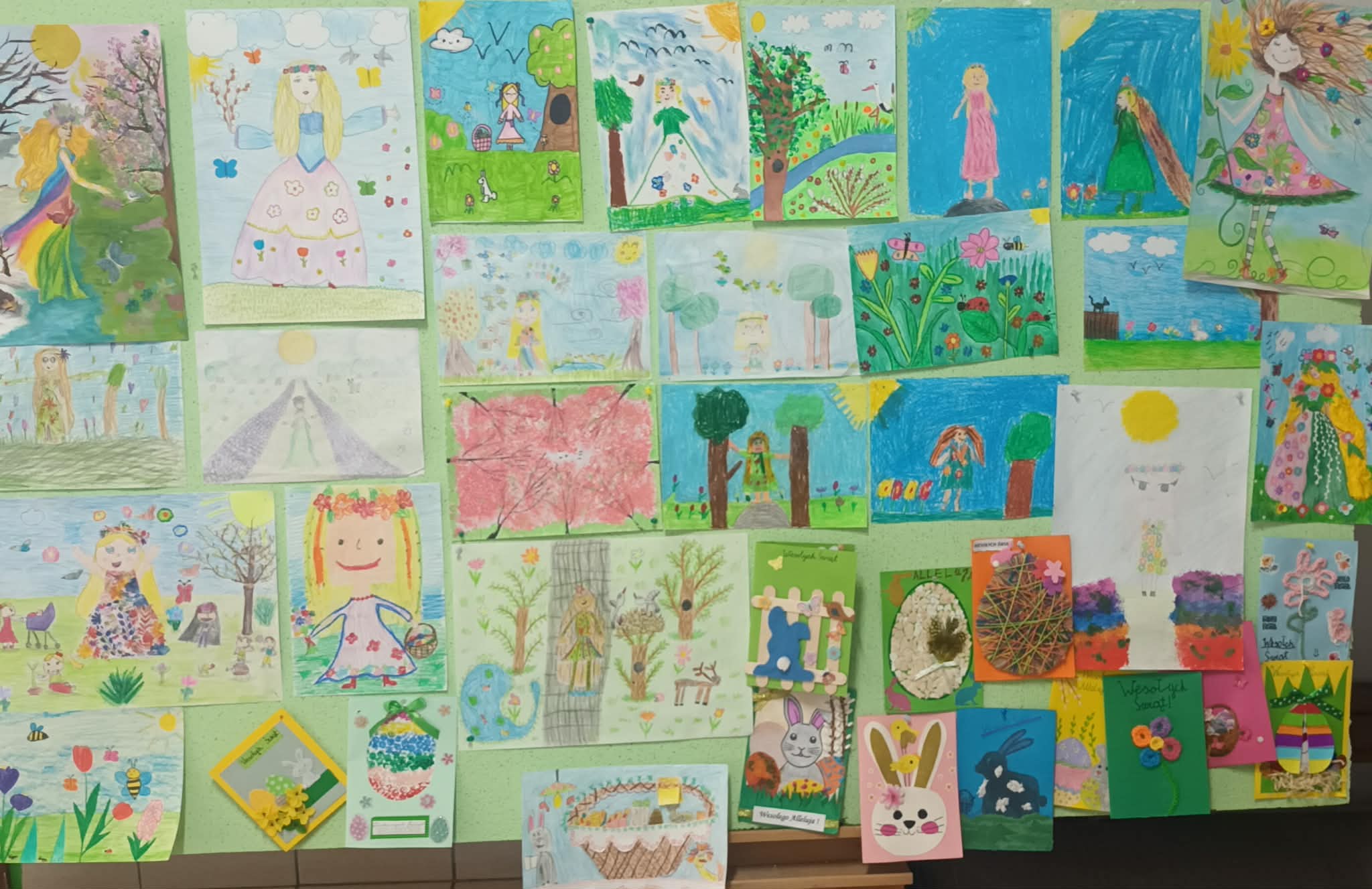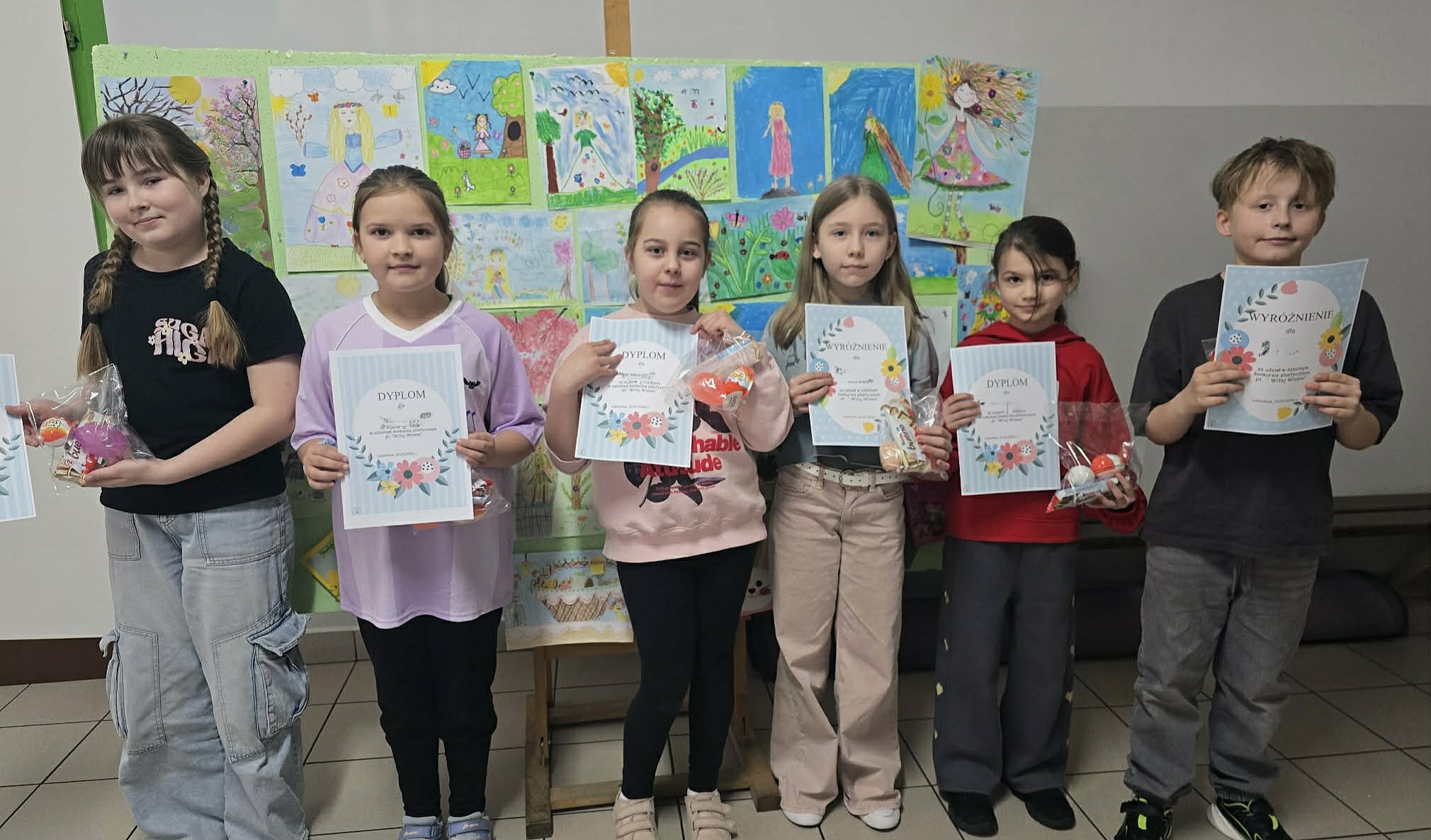 W naszej szkole w klasach 1 - 3 odbył się konkurs plastyczny zorganizowany przez MSU „Witaj Wiosno” oraz na kartkę świąteczną. Uczniowie tworzyli kolorowe prace przedstawiające budzącą się przyrodę i postać Pani Wiosny, jak również własnoręcznie wykonali przepiękne kartki świąteczne różnymi technikami. Wszyscy uczestnicy otrzymali dyplomy i nagrody. Bardzo dziękujemy wszystkim uczniom za udział w konkursie.