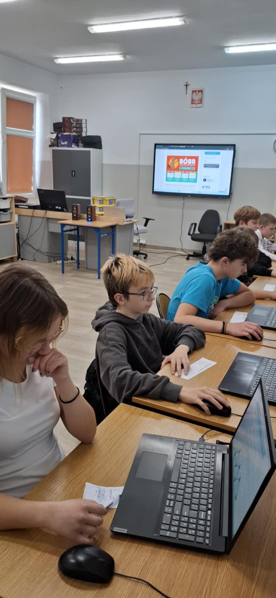 Jubileuszowy XX Międzynarodowy Konkurs Informatyczny Bóbr odbędzie się w listopadzie, jednak już w październiku uczniowie naszej szkoły uczestniczyli w próbie konkursu. 21 października z zadaniami zmierzyli się uczniowie klas VII – VIII, 22 października – uczniowie klas IV – VI, natomiast 23 października, w kategorii Skrzat – uczniowie klas trzecich. Wyniki z próby konkursu nie są wliczane uczniom do ich osiągnięć w konkursie. Udział w próbie konkursu był okazją, by uczniowie zapoznali się z przebiegiem konkursu i rodzajem zadań. Potrenować można także na zadaniach z poprzednich edycji konkursu zamieszczonych na stronie www.bobr.edu.pl w zakładce ZADANIA i WYNIKI.