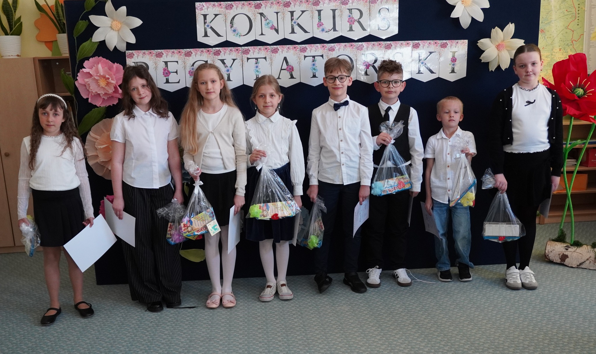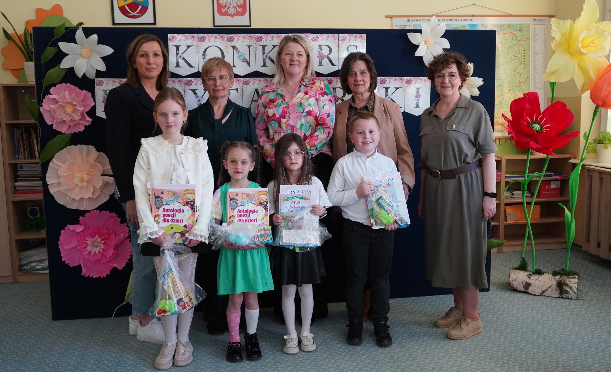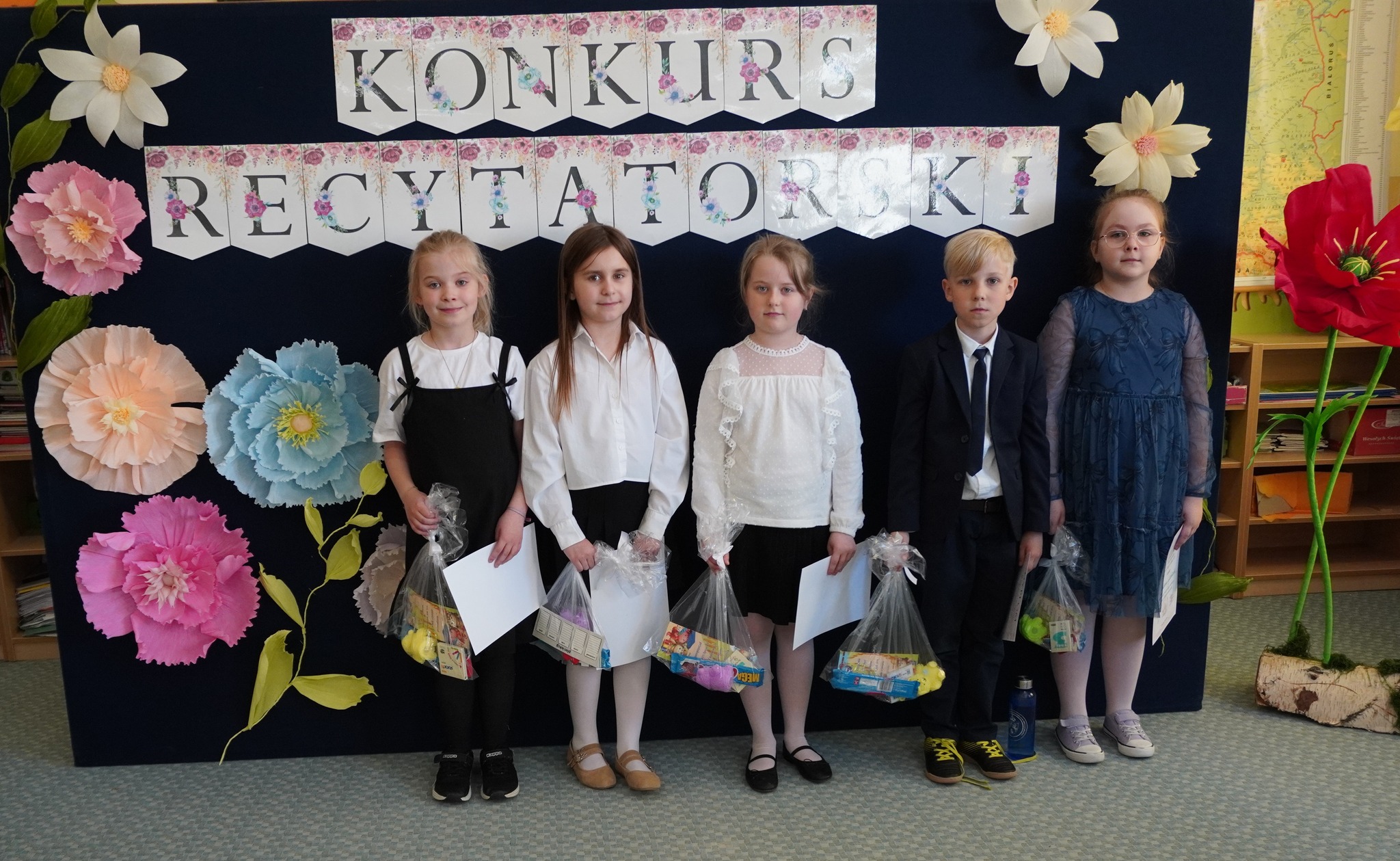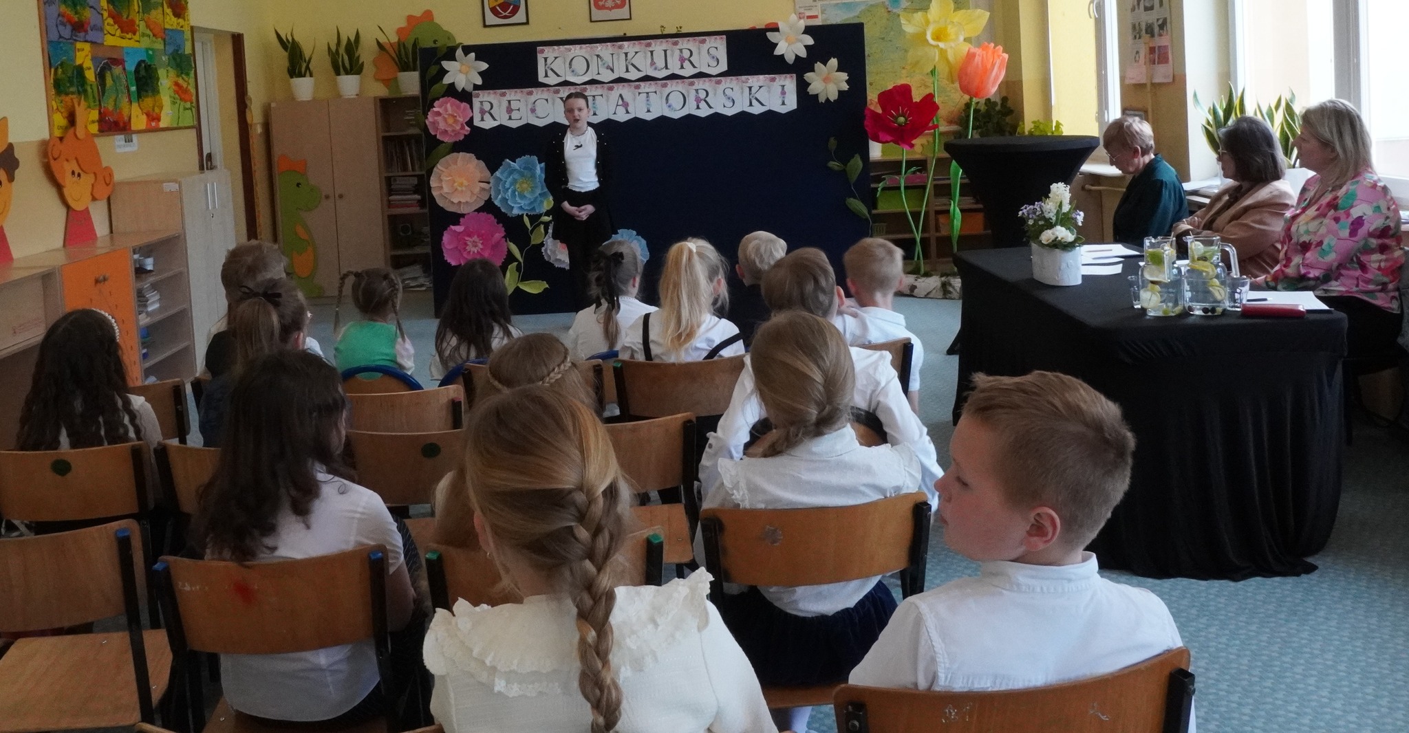 W dniu 28 kwietnia 2026 r. obył się Szkolny Konkurs Recytatorski na szczeblu klas I-III. Wzięło w nim udział 17-cioro uczniów. Komisja w składzie : pani Elżbieta Szczepaniak, pani Katarzyna Widulińska oraz dyr GCK pani Justyna Łomża przyznała następujące miejsca:
