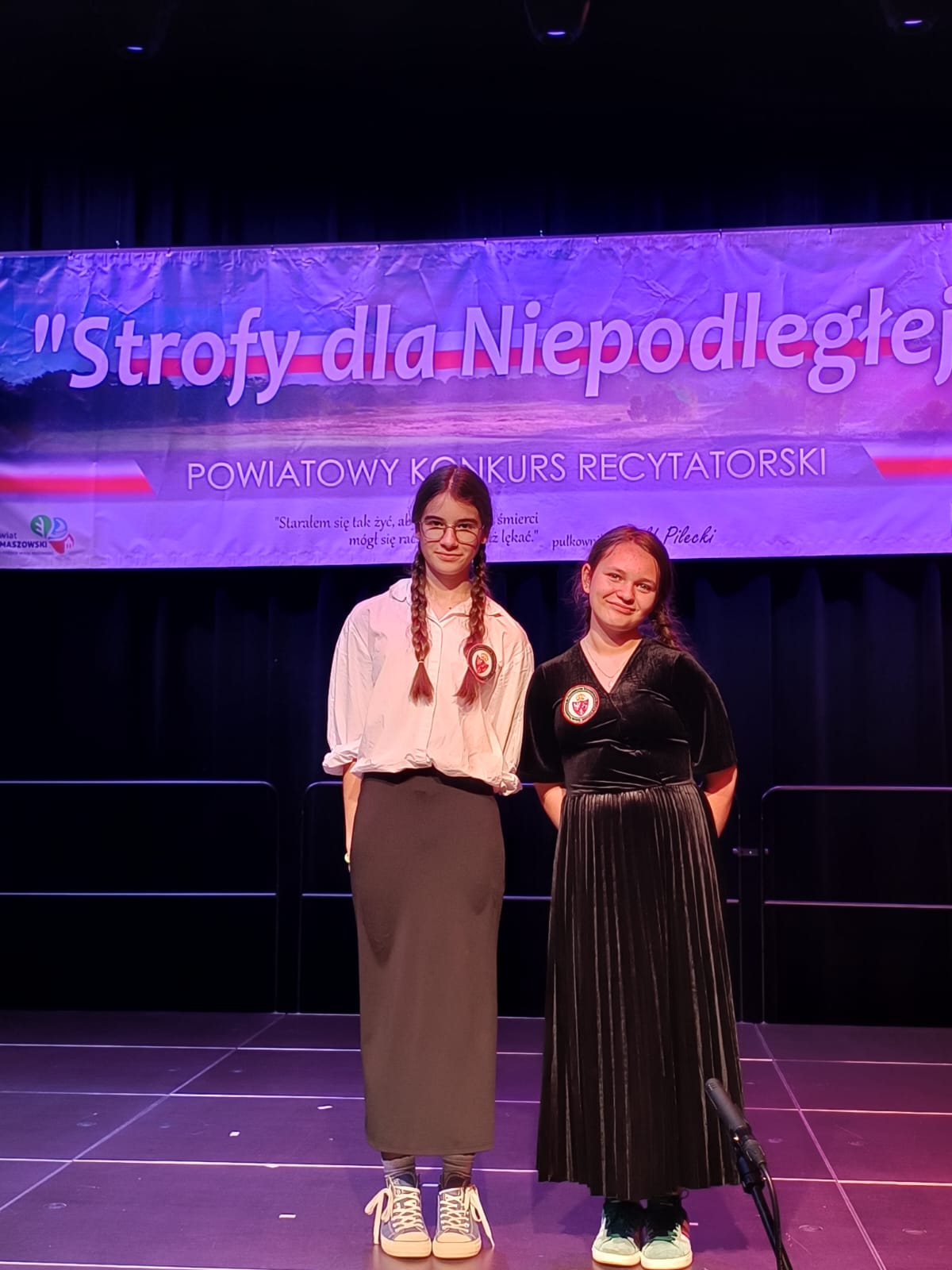 13 listopada nasze dwie utalentowane uczennice: Hanna Pichola (I miejsce,kat. klas 7-8) oraz Małgorzata Szymacha, reprezentowały naszą szkołę na V Powiatowym Konkursie Recytatorskim, „Strofy dla Niepodległej”. Uczennice zachwyciły swoją emocjonalną interpretacją tekstu i ogromną wrażliwością. Gratulujemy pięknych występów. Brawo!