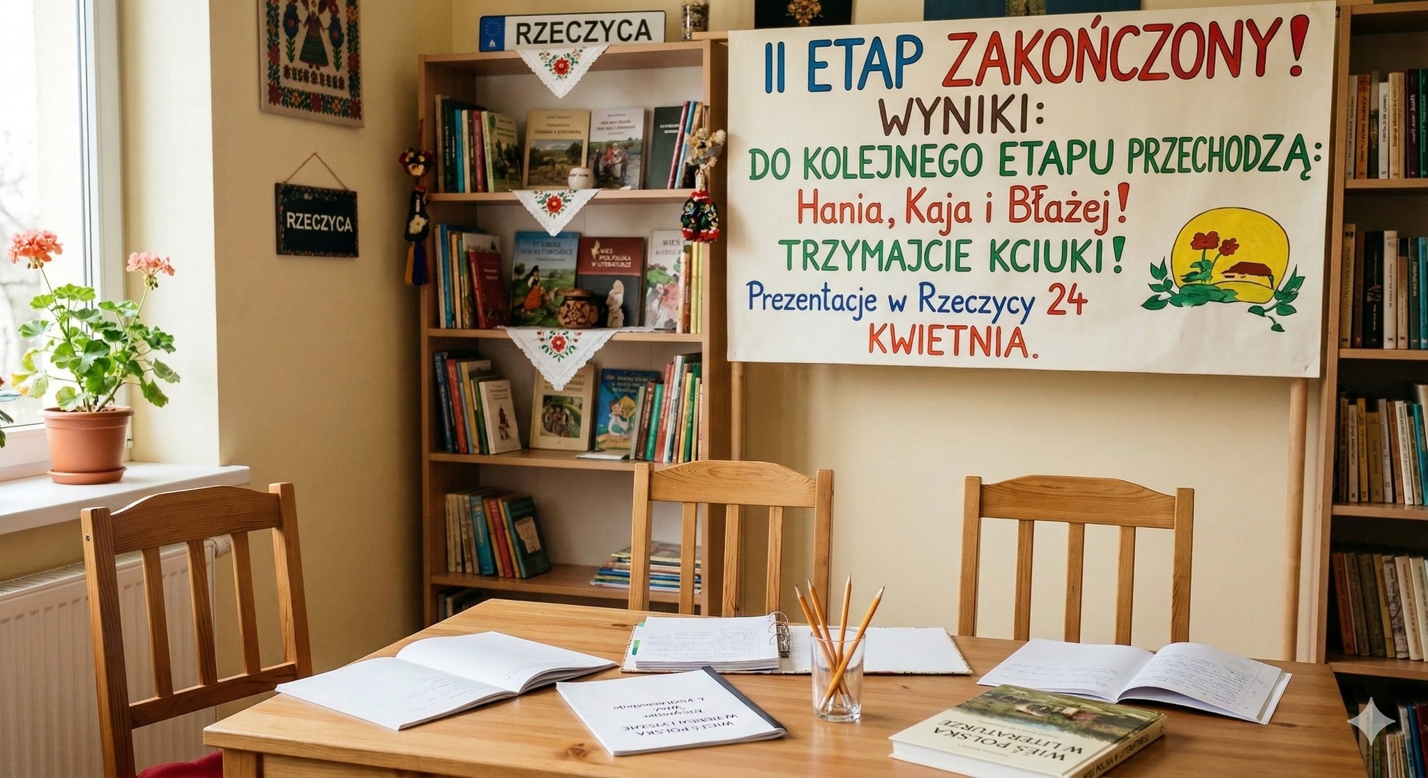 W kolejnym etapie zmagań wezmą udział: Hania, Kaja i Błażej. Uczniowie już rozpoczęli przygotowania. Prezentacje będą miały miejsce w Rzeczycy 24 kwietnia. Trzymamy kciuki!