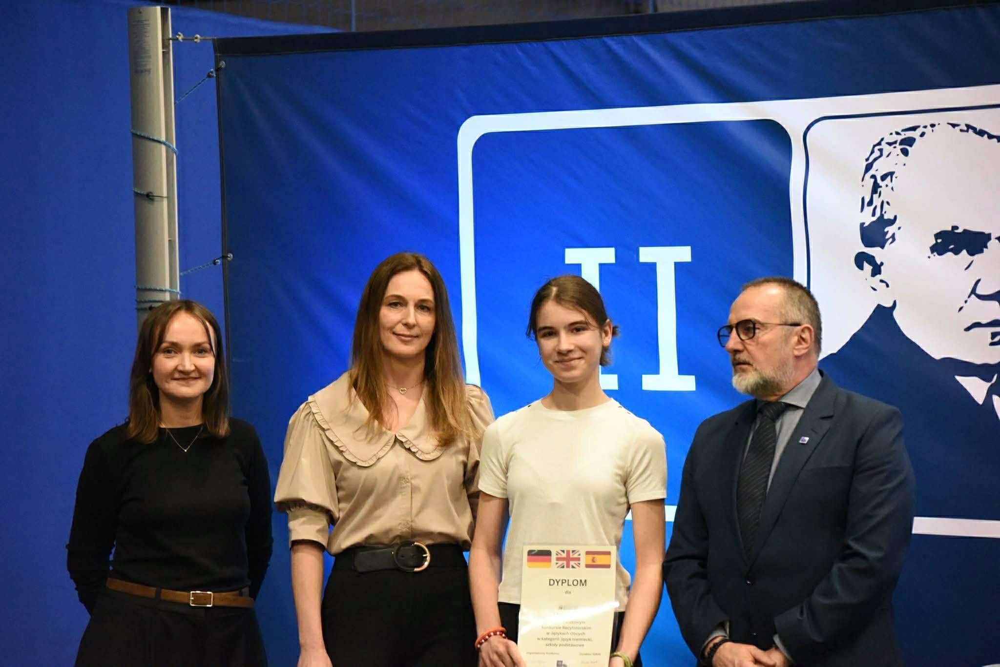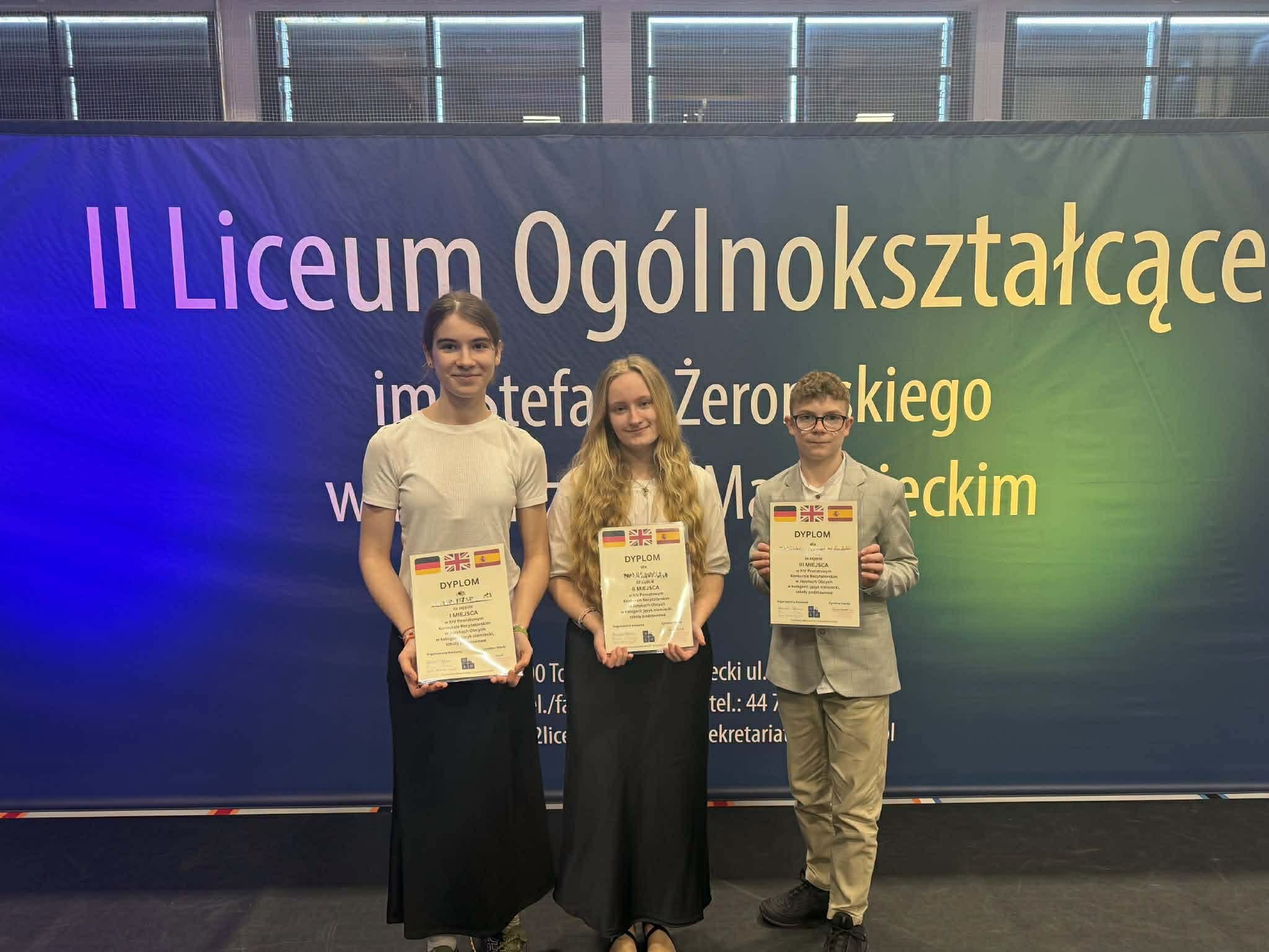 10 kwietnia uczniowie naszej szkoły zaprezentowali swoje umiejętności językowe w XIV Powiatowym Konkursie Recytatorskim w Językach Obcych. Tematem przewodnim tegorocznego konkursu były ,,Wartości moralne zapisane w sercu” czyli refleksja nad uniwersalnymi zasadami kształtującymi człowieka i jego postawy. W kategorii język niemiecki uczniowie naszej szkoły uzyskali: III miejsce Eryk Szymański (klasa 6c) z utworem Ericha Kästnera ,,Dem andern treu ”; II miejsce Anna Schab (klasa 8c) z utworem Johanna Wolfganga von Goethe ,,Das Göttliche” ex aequo z uczniem SP nr 10 w Tomaszowie Mazowieckim; I miejsce uzyskała Hanna Pichola (klasa 8c) recytując utwór Wisławy Szymborskiej ,,Nichts kommt zweimal vor” , ex aequo z uczennicą SP w Komorowie. Organizatorem konkursu było II Liceum Ogólnokształcące im. Stefana Żeromskiego w Tomaszowie Mazowieckim. Do konkursu uczniowie zostali przygotowani przez p. Ewę Szczepanik.